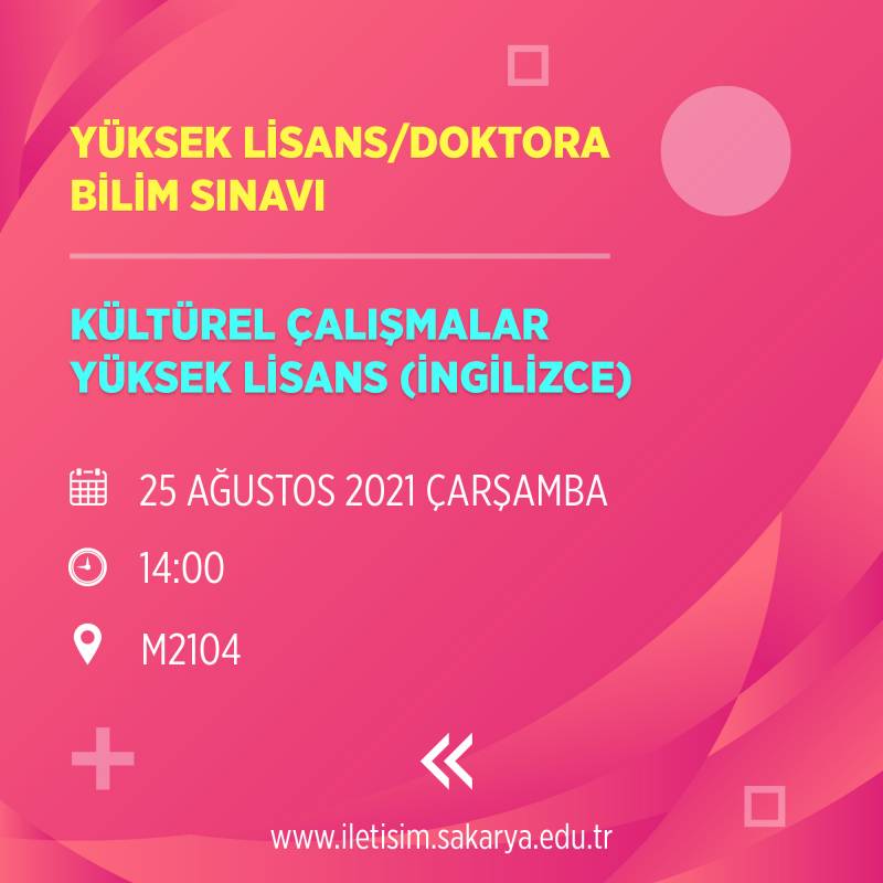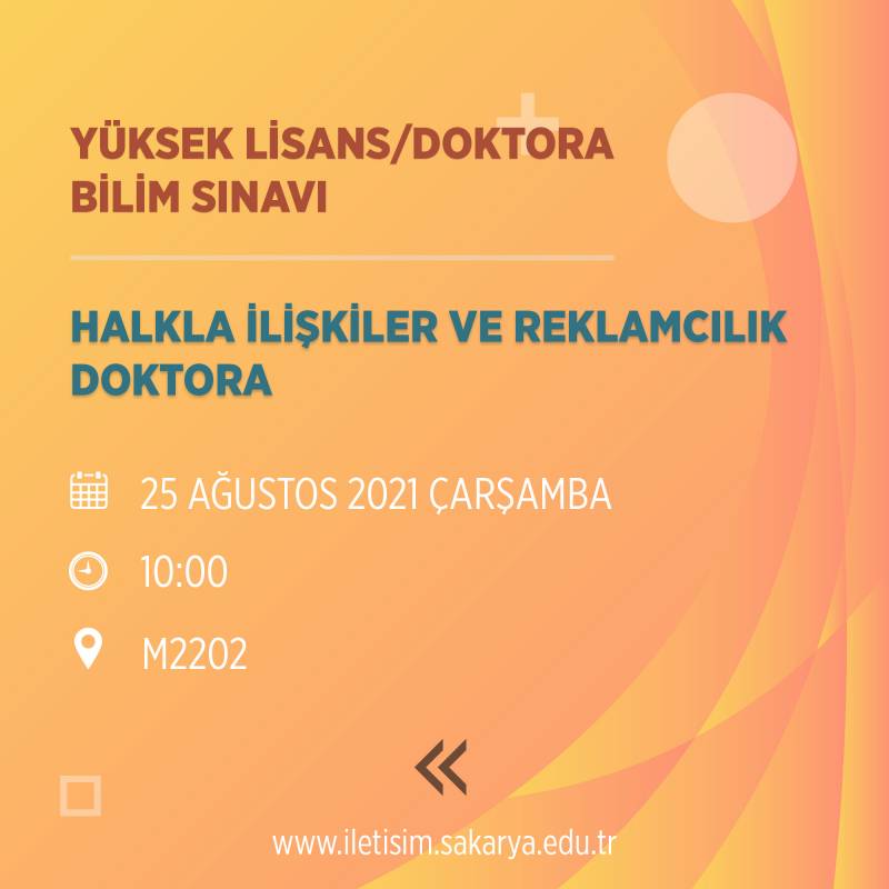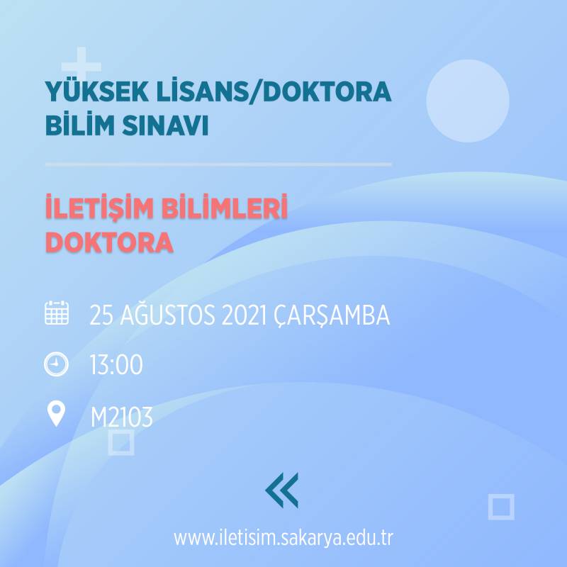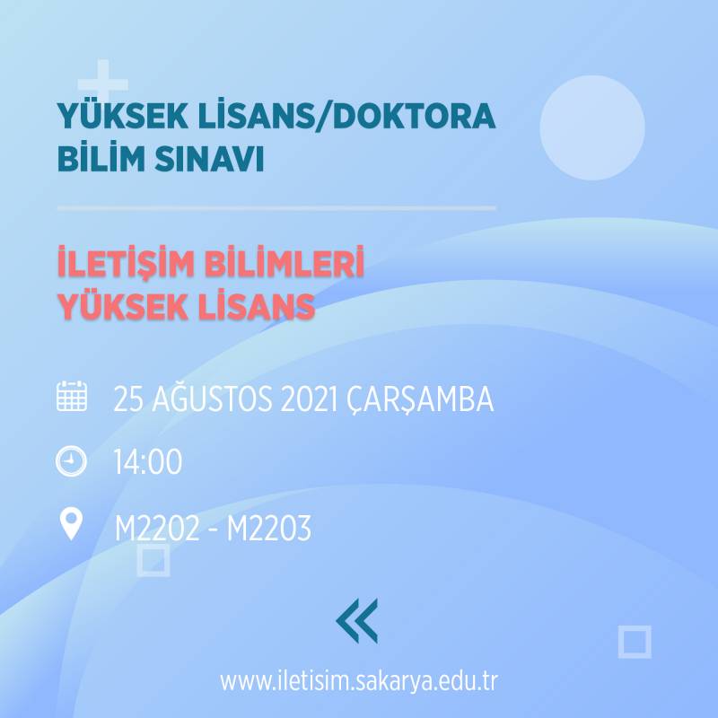 2021-2022 güz yarıyılı tezli yüksek lisans ve doktora öğrenci alımına ilişkin bilim sınavına ilişikin duyuru yayınlandı.