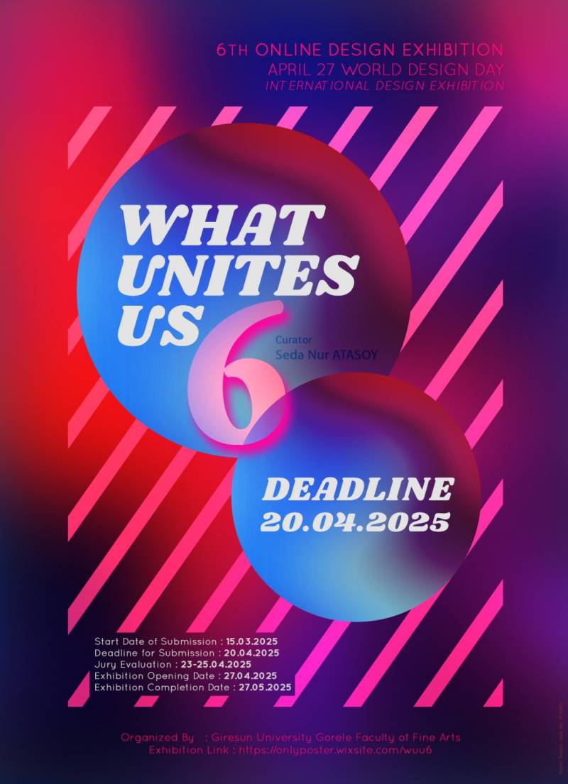 Giresun Üniversitesi Grafik Tasarımı Bölümü öğretim üyeleri, "27 Nisan Dünya Tasarım Günü" etkinlikleri kapsamında bu yıl altıncısını düzenleyecekleri çevrim içi uluslararası ve jürili "What Unite Us (Bizi Ne Birleştirir?)" sergisini duyurdu.