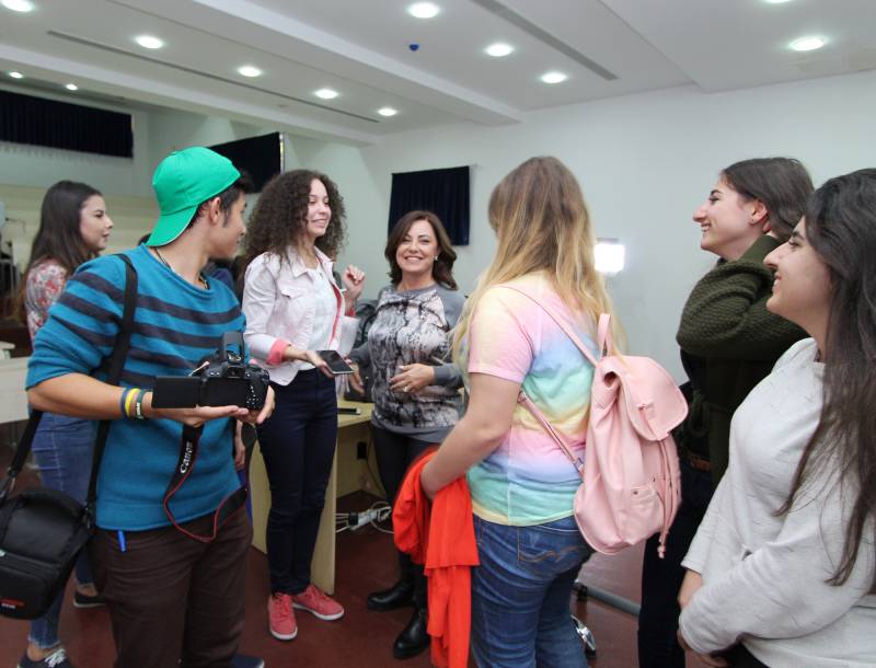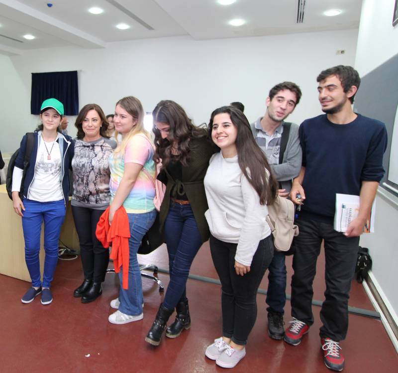 Program sonunda İletişim Fakültesi Dekanı Prof. Dr. Aytekin İşman tarafından plaket verilen Ece Karaboncuk ardından öğrencilerle sohbet edip fotoğraf çektirdi.