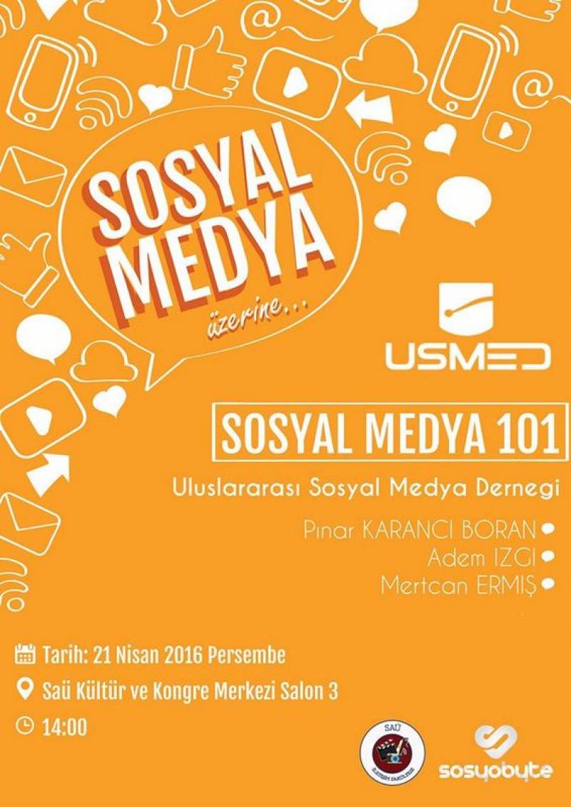 Sosyal medya, dijital medya ve mobil medya kullanıcısı kişi ve kuruluşları temsil eden ve dünyanın ilk sosyal medya örgütlenmesi olan USMED’in yönetim kurulu üyeleri Pınar Karancı Boran, Mertcan Ermiş ve Adem İzgi, ‘Sosyal Medya 101’ adlı etkinlikte İletişim Fakültesi öğrencileriyle bir araya geldi. USMED temsilcileri, SAÜ Kültür ve Kongre Merkezi’nde gerçekleşen söyleşide öğrencilere, sosyal medyanın daha etkili nasıl kullanılacağı ve sosyal medya uzmanlığı hakkında bilgi verdi.