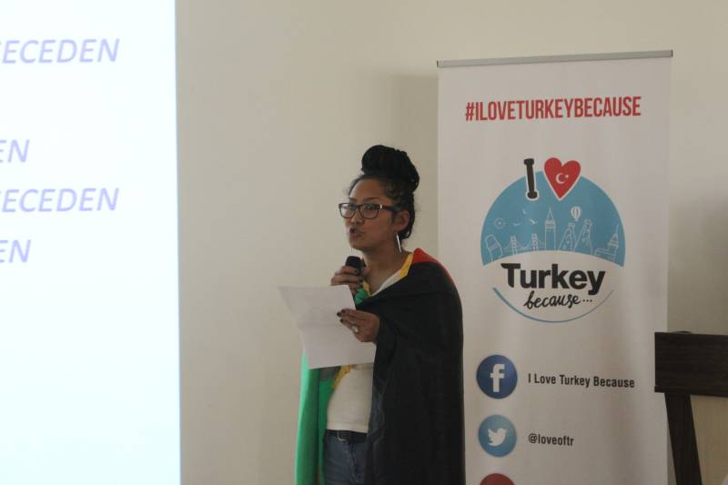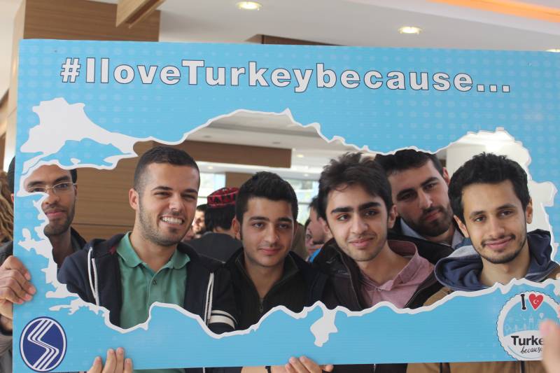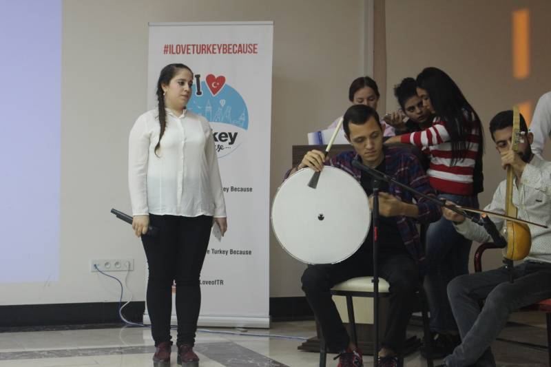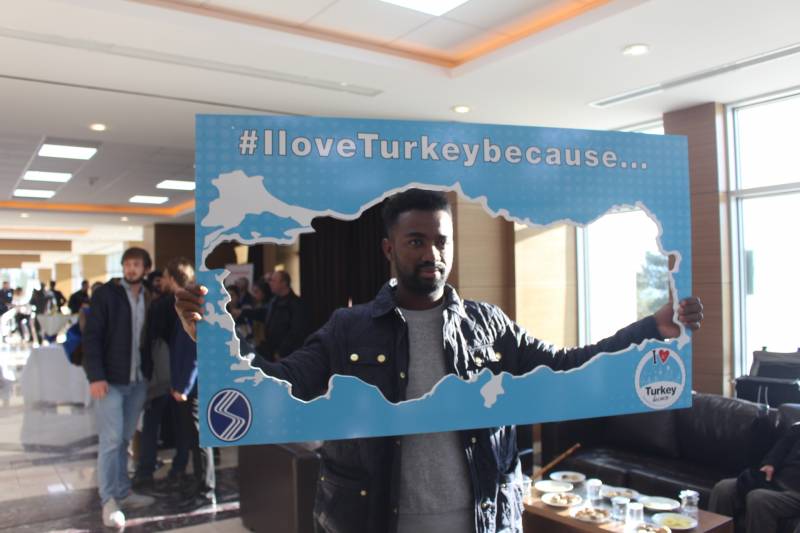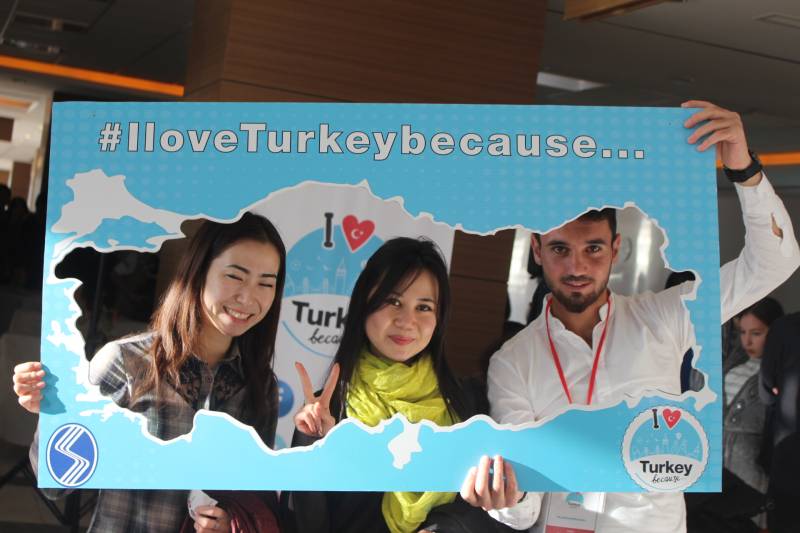 Rektör Prof. Dr. Muzaffer Elmas, Rektör Yardımcısı Prof.Dr. Mehmet Ali Yalçın, İletişim Fakültesi Dekanı Prof. Dr. Aytekin İşman’ın yanısıra fakülte öğretim üyeleri ve öğrencileri katıldığı resepsiyon, ‘I love Turkey because’ projesinin amacı, içeriği ve sosyal medya hesaplarının tanıtılmasıyla başladı. Endonezya’dan Azerbaycan’a, Özbekistan’dan Malezya’ya farklı ülkelerden misafir öğrencilerin dans gösterileri, şarkılar, şiirler ve video gösterimleriyle kültürlerini tanıttıkları resepsiyonda misafir öğrenciler, aynı anda attıkları ‘I love Turkey because’ etiketli twitleriyle Türkiye sevgisini dile getirdi.