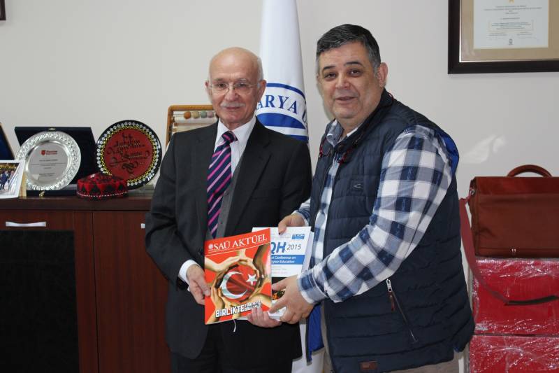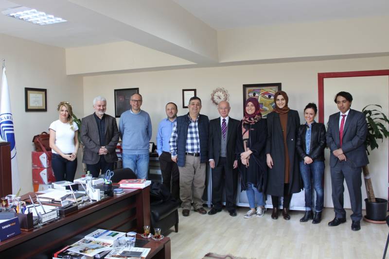 Karşılıklı fikir alışverişinde bulunan Londra Ofis heyeti ve İletişim Fakültesi Dekanı görüşmenin sonunda hediye takdiminde bulundu.